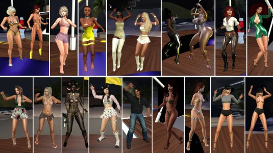 August 5th – Friday night party: Diomita, slave Alessi, Angelique, Flo, Dely (krybia), Liz Swann (lizswann), Ebony Massey, Vishii (Vaishyaa), Baroness Capelo, Rhyn Nootan (upper row), Della Randt, Starbright Winngtips, Bast (Bastet Starchild), Kawaii Suki, Jayson Dakota, Claven Albatros, Laura (laura00175), Virgo Babii, Virgo Babii (lower row)