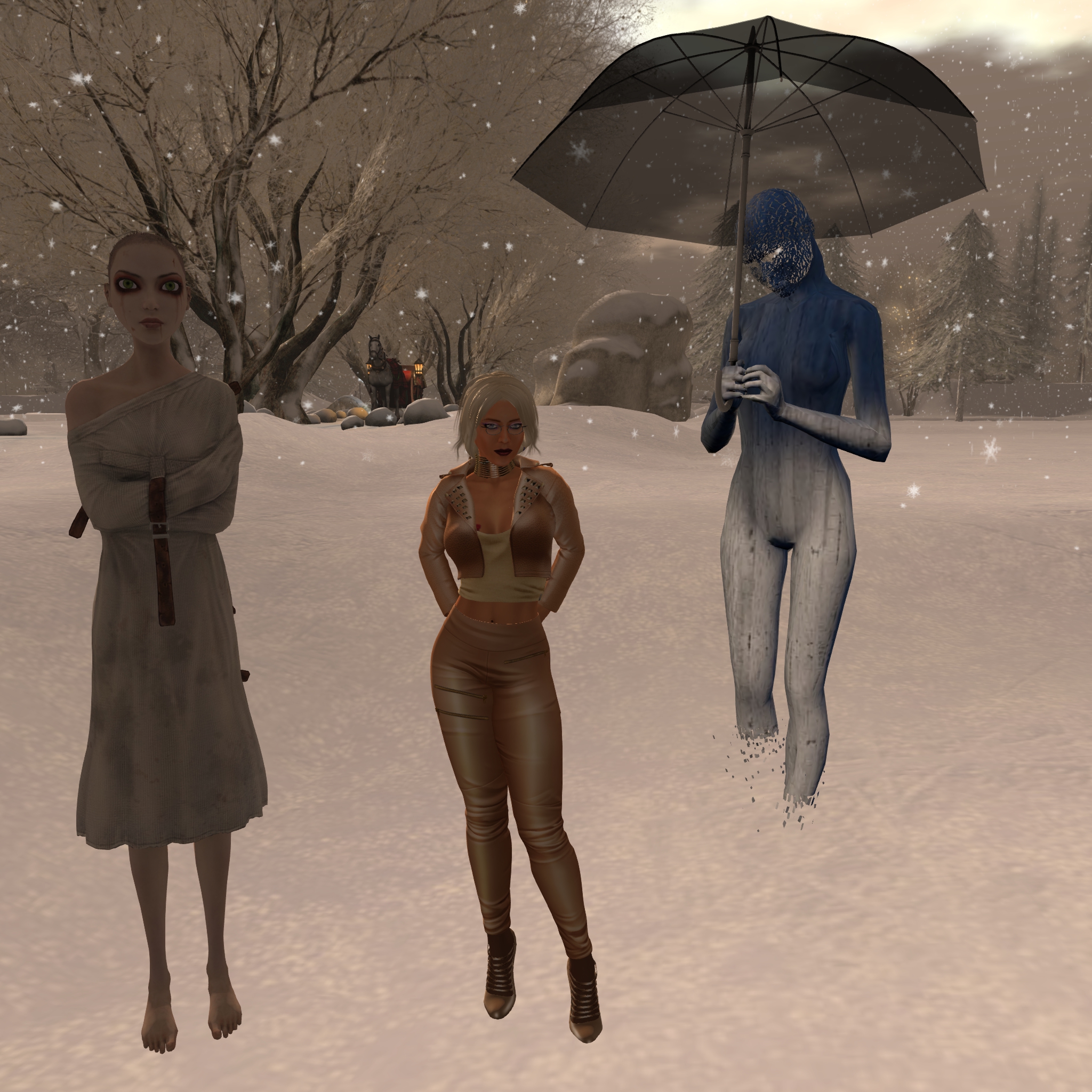 I found some time for simploring again. Yesterday I visited the “Gates of memories“. The sim’s description in the landmark is short: “We don’t remember days, we remember moments“. So what is it about? Basically it is a sparse winter landscape with two small houses. The whole island is snowbound and it is snowing permanently. Embedded in this scenery is art which is outstanding in the quite monotonous scenery.