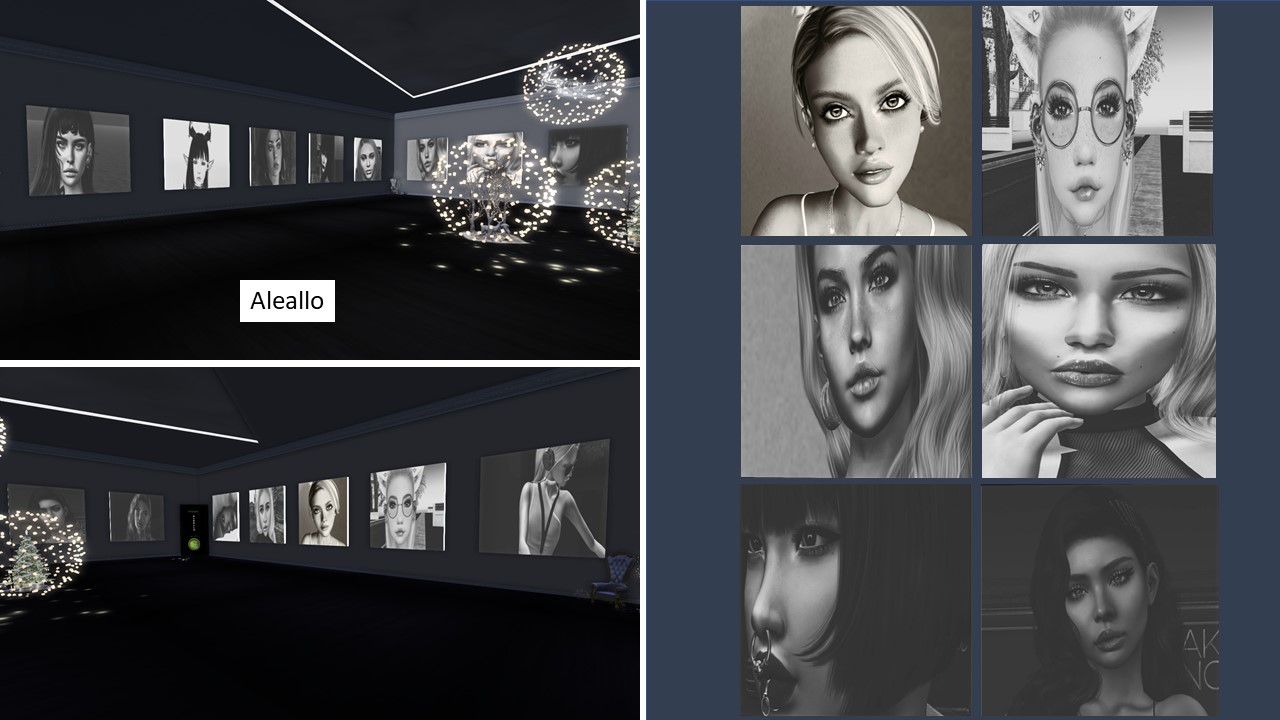 Allo (Aleallo) is in Second Life for 4 years. It is the first time I saw his work. Allo makes portrait pictures of people in Second Life. He keeps them im black and white. The showcased portraits at La Maison d’Aneli all seems to tell a story as portraits should do.