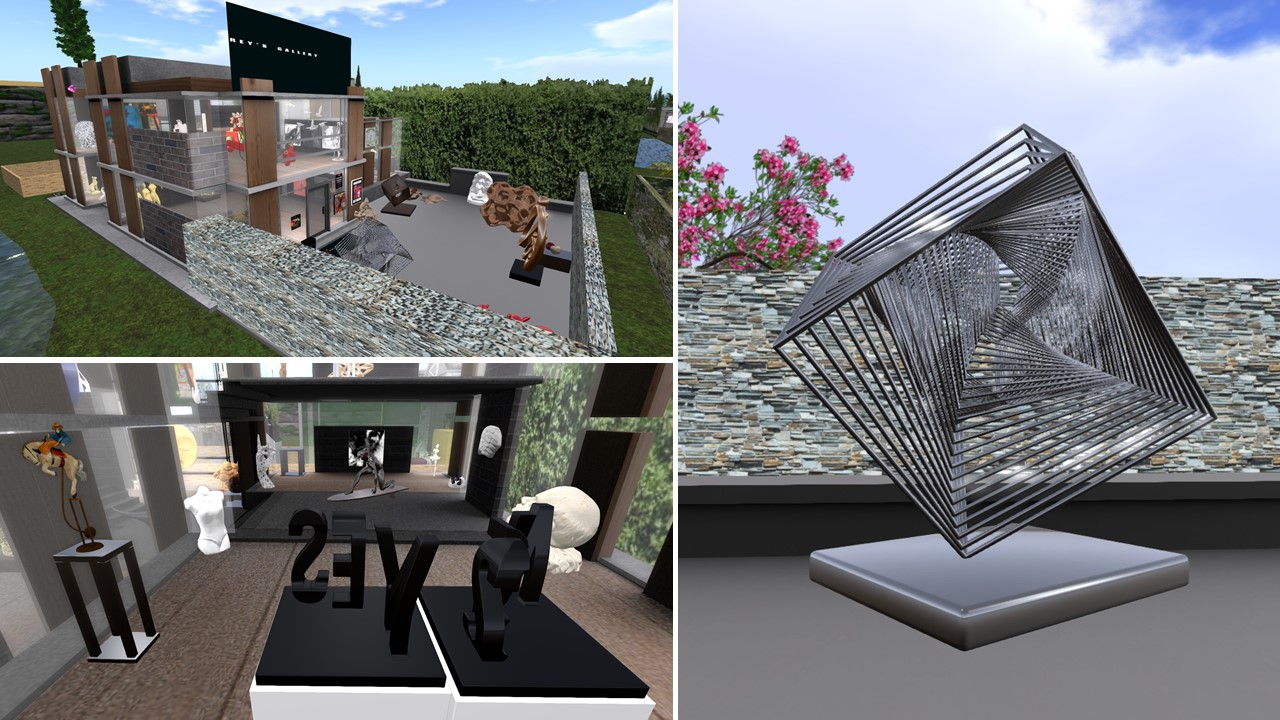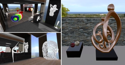 Let me start with my simploring tours about art in Second Life. I admire the creativity of artists in this virtual world, I visited galleries like Lyric Art Gallery, La Masion D’Aneli, 20][21 gallery, Rey’s Gallery, Shui Mo Gallery, Milly Sharple’s Fractal galleries, Daphne.Arts and Deva Westland’s Galerie Des Beaux-Arts. I visited and wrote about 7 installations of Cica Ghost, who continues to conjure a smile in my face with every of her funny whimsical creations. I saw fewer art installations since the Linden Endowment for the Arts (LEA) is on hold. But some private initiatives luckily provide space or the artists themselves dedicate their own space. Just recently I saw an exhibition of Mistero Hifeng’s art at Valium Creek Art Park. I saw “The Mind Melter” by Thoth Jantzen at VeGeTaL PLaNeT, I saw “Lalawood” by Theda Tammas, Yoon (onyxxe), Iono Allen and JadeYu Fhang at La Maison d’Aneli as well as “Binary Radiation” by Nino Vichan. I saw Twilights Doors by Bo Zano (Bozanonl Resident), “The Outer Garden” by bisou Dexler, “Inferno” by Noke Yuitza, “Avaloir” by Eupalinos Ugajin, Undertones by Oluja (artistik Oluja) and “Delicatessen – Tell Me a Story” by Meilo Minotaur.