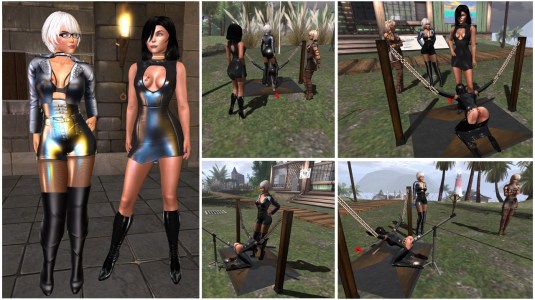 After some shopping, which is always fun, last night I got even closer to the goal having all 6 living latex dolls on one picture. slave cecy and sklavin Gebby were online and thus I got the picture of living latex doll number 5. I tied both up at Sarah’s patio and after taking the pictures I had fun teasing the slaves. So after all, it was a relaxing quiet night.