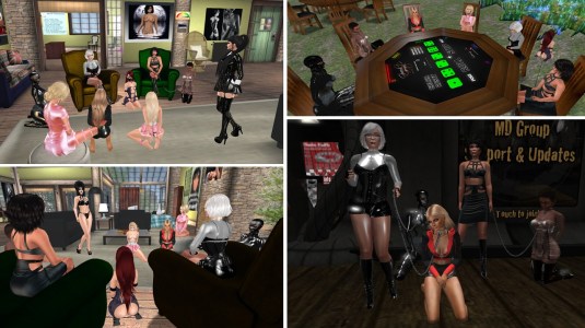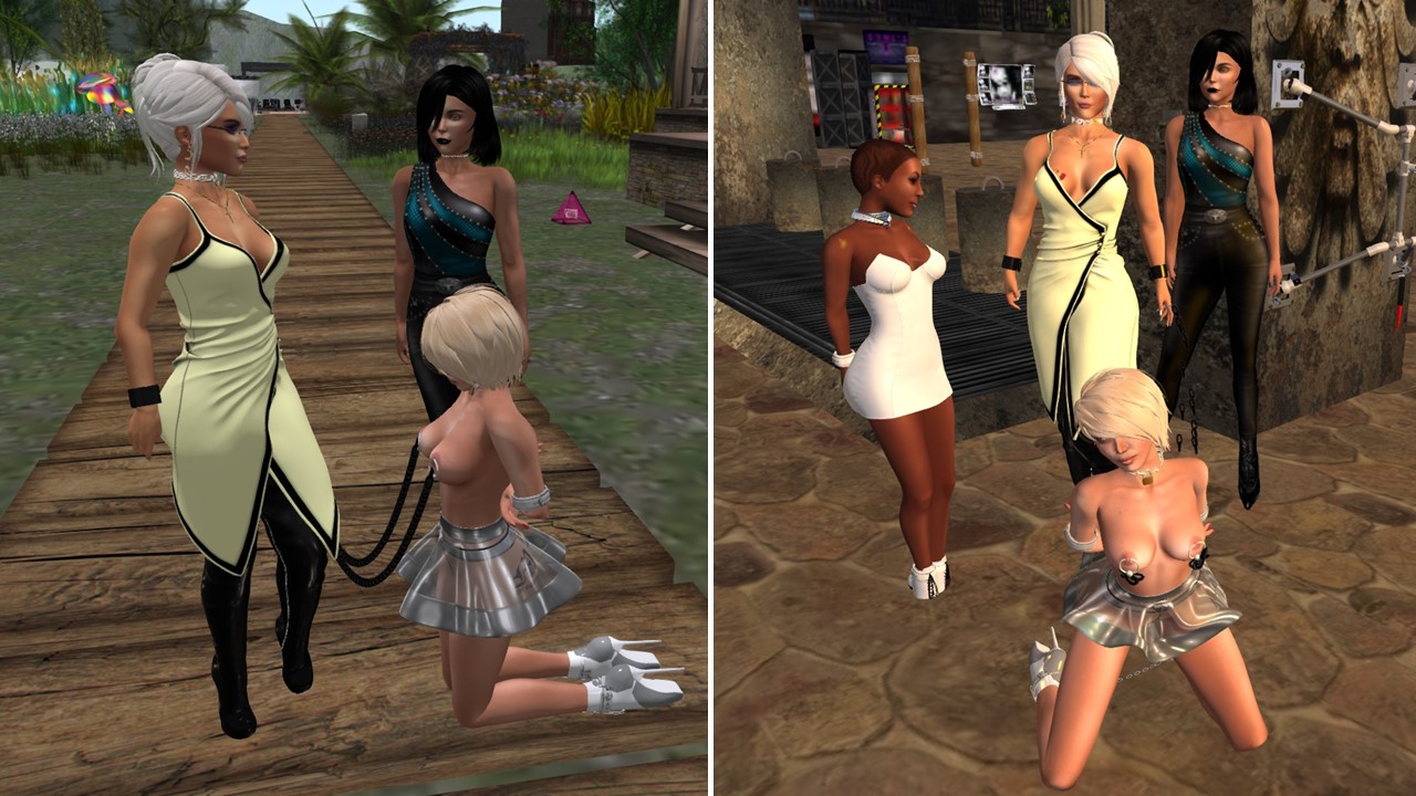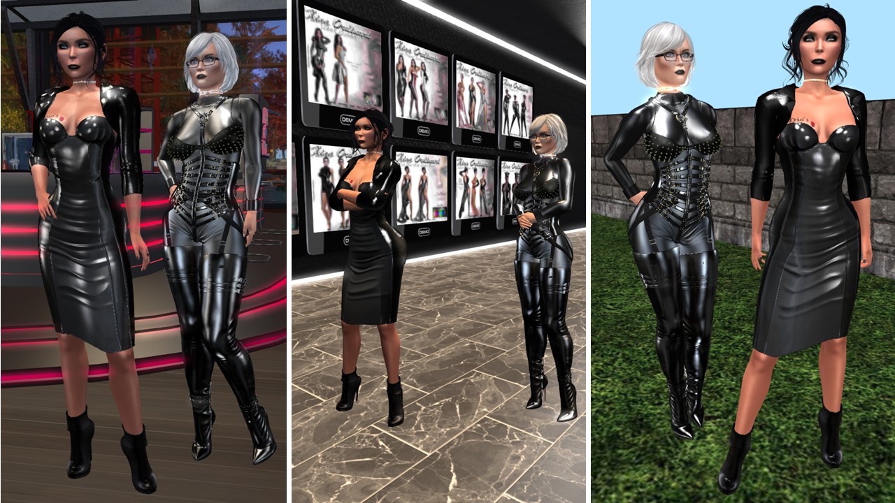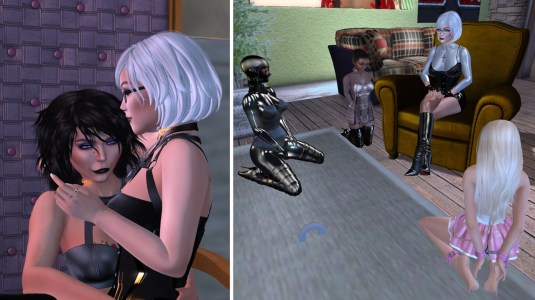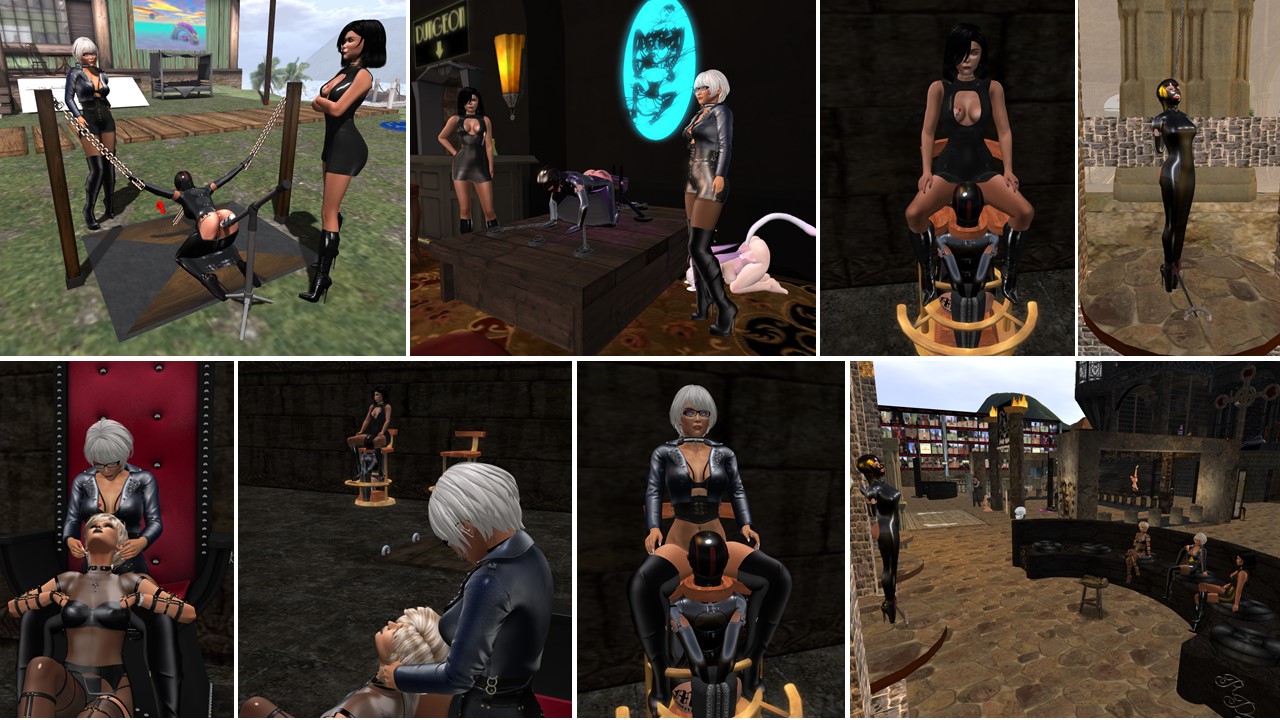 Last night we had our regular party at our homesim Mount Everest. It was relaxing and fun. We really enjoy to begin our weekends winding down dancing and chatting. We also had our living latex dolls slave Flo and slave Nina with us and we allowed them to dance and to share the fun. slave Flo wore sun glasses which look really cool in combination with the yellow latex suit.