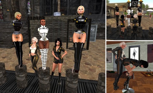I also found time to finish the picture of all living latex dolls lined up tied at Sarah’s patio. The enjoying bondage night of the living latex dolls. The last three entries were sort of a “making of” of this picture. I had 5 of the 6 living latex dolls tied up there. I just missed slave Mii, so I took another picture of her to have them all together in one picture. Here it is … taadaa!