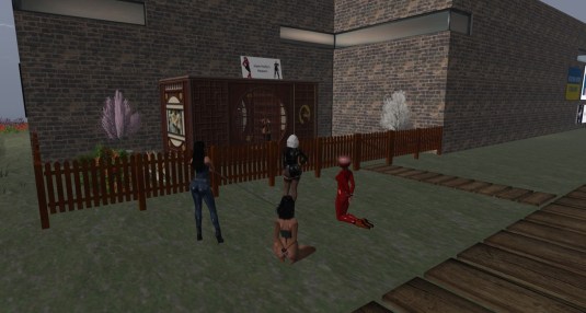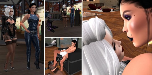 Our night was relaxed. Flo was playing skipee and we joined her by the table. She stopped playing and just after we got our subhugs, Ann (TransAnn) come by for a visit and to show off her new shiny chrome catsuit. We chatted a little bit until slave Holly came inworld, then Ann left and Mistress, Flo, slave Holly and I played a skipee as teams. it was a close game, hence it was fun. it was already Flo’s bedtime when we had finished our game. slave Alessi joined us. Alessi had chosen a red catsuit and was ready to be locked into her armbinder. Now all slaves were in their March outfit. We went to Carnal Intentions with slave Holly and slave Alessi and spent the rest of the night there, chatting and teasing, a nice contrast to the afternoon for me. Lucy (MissLucyWales) joined us for a short time.