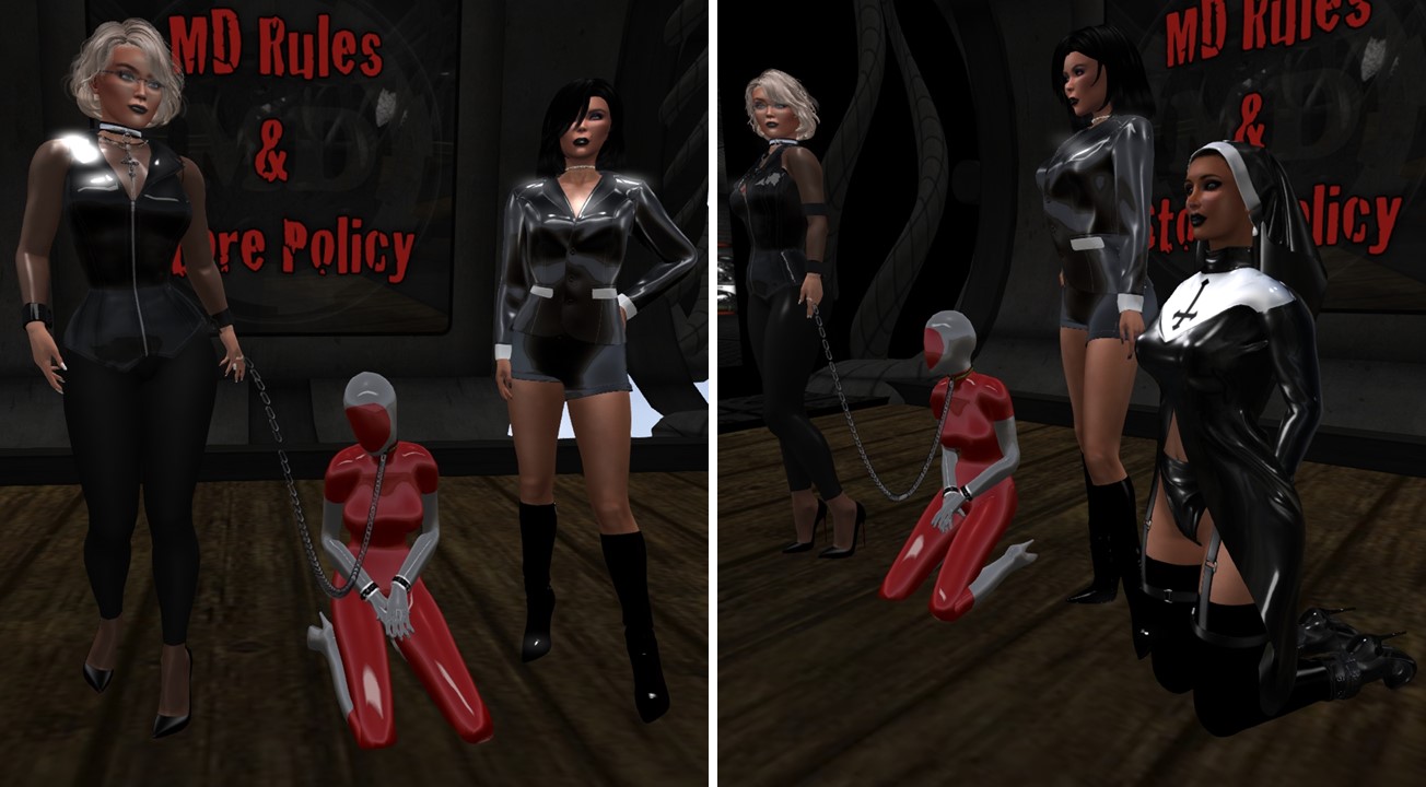 Monday afternoon, March 9th, I met with Mistress Jenny in the afternoon again and we visited Mesmerize Dungeon and later Heavy Bondage Club. To our surprise something was going on at Mesmermerize Dungeon and we got to see some entertainment by a domme who was permanently teasing and humiliating her slave. More importantly for me was that I talked with Mistress Jenny about the crawling two days before and what it had caused to me. Mistress could understand my feelings, actually she didn’t do it intentionally, it was more a spontaneous action with no particular reason and not meant to punish me. Nonetheless it was another puzzle piece in my submission to Mistress. Thank you, Mistress.