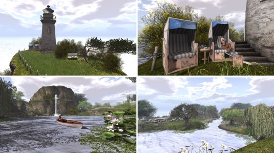 Northern Shore – Skärgården (upper left) / Scarlett Isle (upper right) / Secondlife National Park (lower left) / Black Mire – around hi-cafe (lower right)
