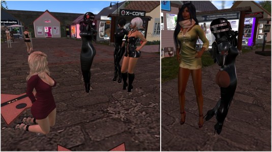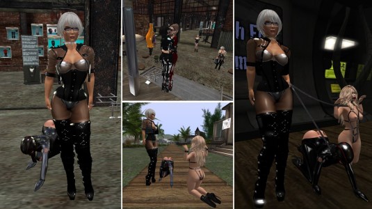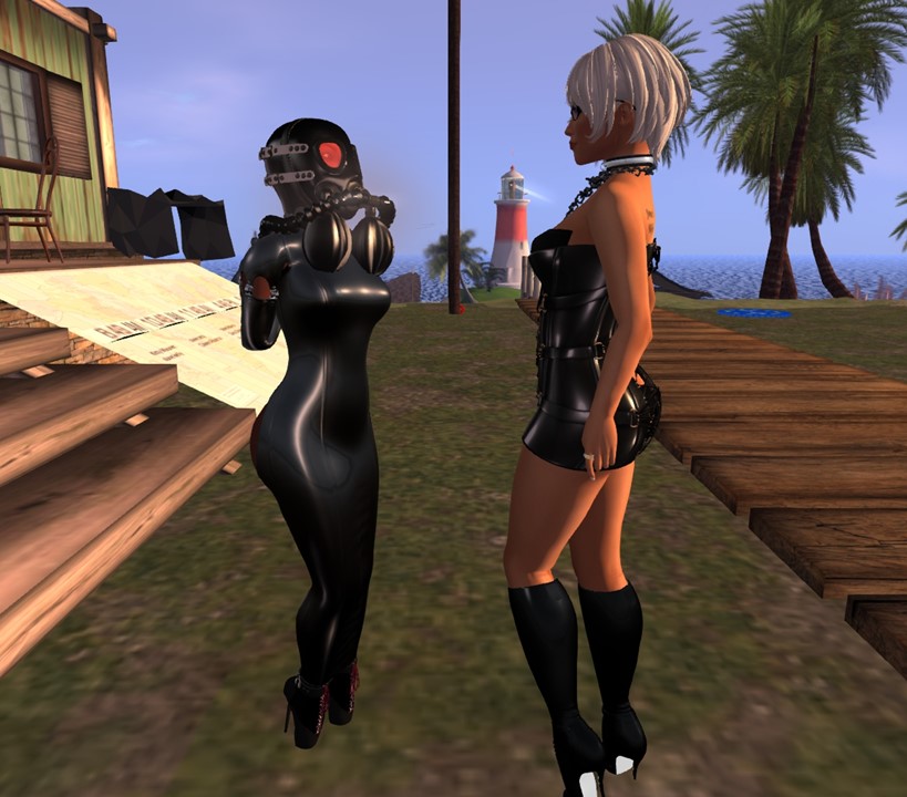 We went home quite early to say good night to slave Flo and slave kelly and I summoned Gwen over so that she can explore our island. Then I retreated with Jenny to take advantage of my green light. I had bought a new suit for her, that we saw at Mesmerize Dungeon the first time. It’s called gag suit and consists of a body and a hood. It is colourable by the keyholder. Jenny had to wear it and I took her to club Domme a Domme to expose her and to enjoy my control. I even shut off hearing for her and had her all for myself in private chat. Last but not least I went to club DeLust with her again and had her kneeling next to me.