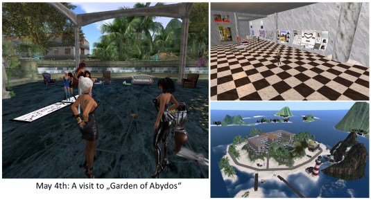 We ended the night with a visit at club DeLust. To sum it up our tour on May 4th consisted of 3 quite different places: ~Silenced~, Garden of Abydos and Estate Obsure. And this is one reason for the title of this diary entry. The second reason for the title is that I went on an extended weekend in RL and was offline May 5th and 6th. And the third reason is that Mistress Jenny went on a kinkploring tour during my absence and visited Dedendz Prison on May 5th (see “While the mouse is away“).
