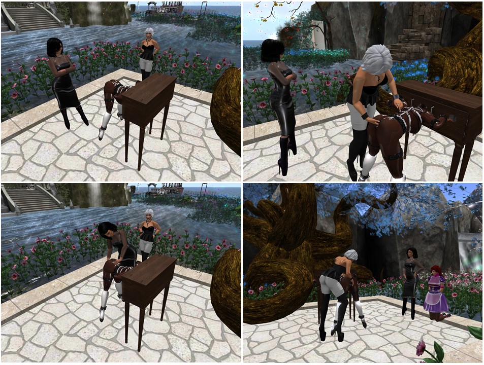 I took slave Flo and sissy maid to the patio, where Fin’s Beauty Virgo was still locked on the dual slave post, but apart from saying hello to her, I more or less neglected her. She has a lot to learn but that’s Fin’s task, not mine. I tried to play with sissy’s chastitied dick and wanted to leash her by it, but it widn’t work. We went to xcite for an update, but that didn’t help. I can’t unlock sissy’s chastity device, I can’t leash her by it, I can just hide it. With this technical issue time flew by and slave Flo had gone to bed. sissy maid will have to contact the customer support.