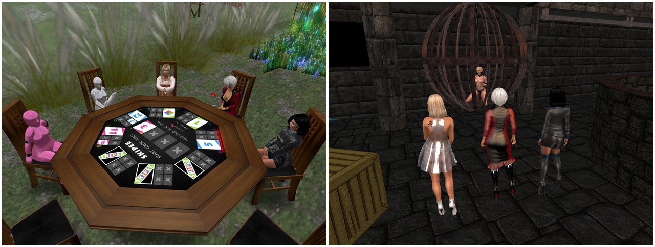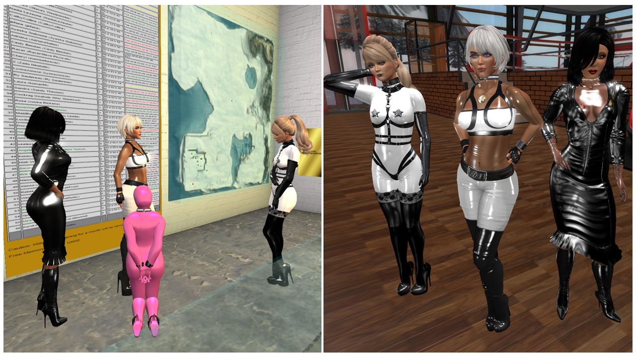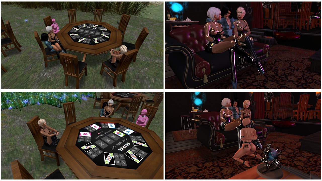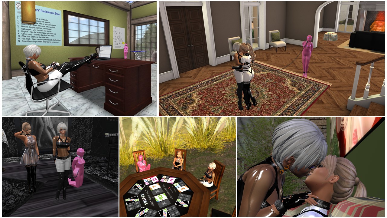 At night we had two drone slaves around us: slave drone Flo (in pink) and slave drong Flo two (Anne in white). Of course I didn’t restrict slave drone Flo two as tight as slave drone Flo yet. But slave drone Flo two has similar mantras to say in a random order. That was kind of a particular fun when Mistress Jenny, Angelique, the two drones and myself went to Mesmerize Dungeon and got some eye candy there while chatting.