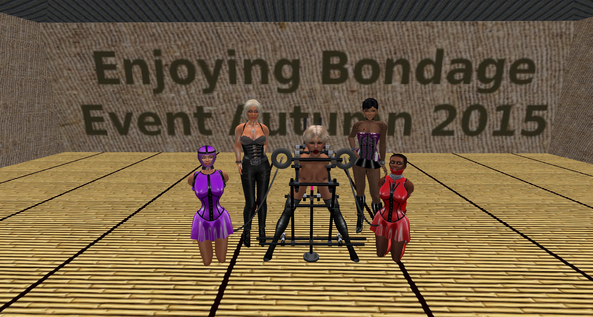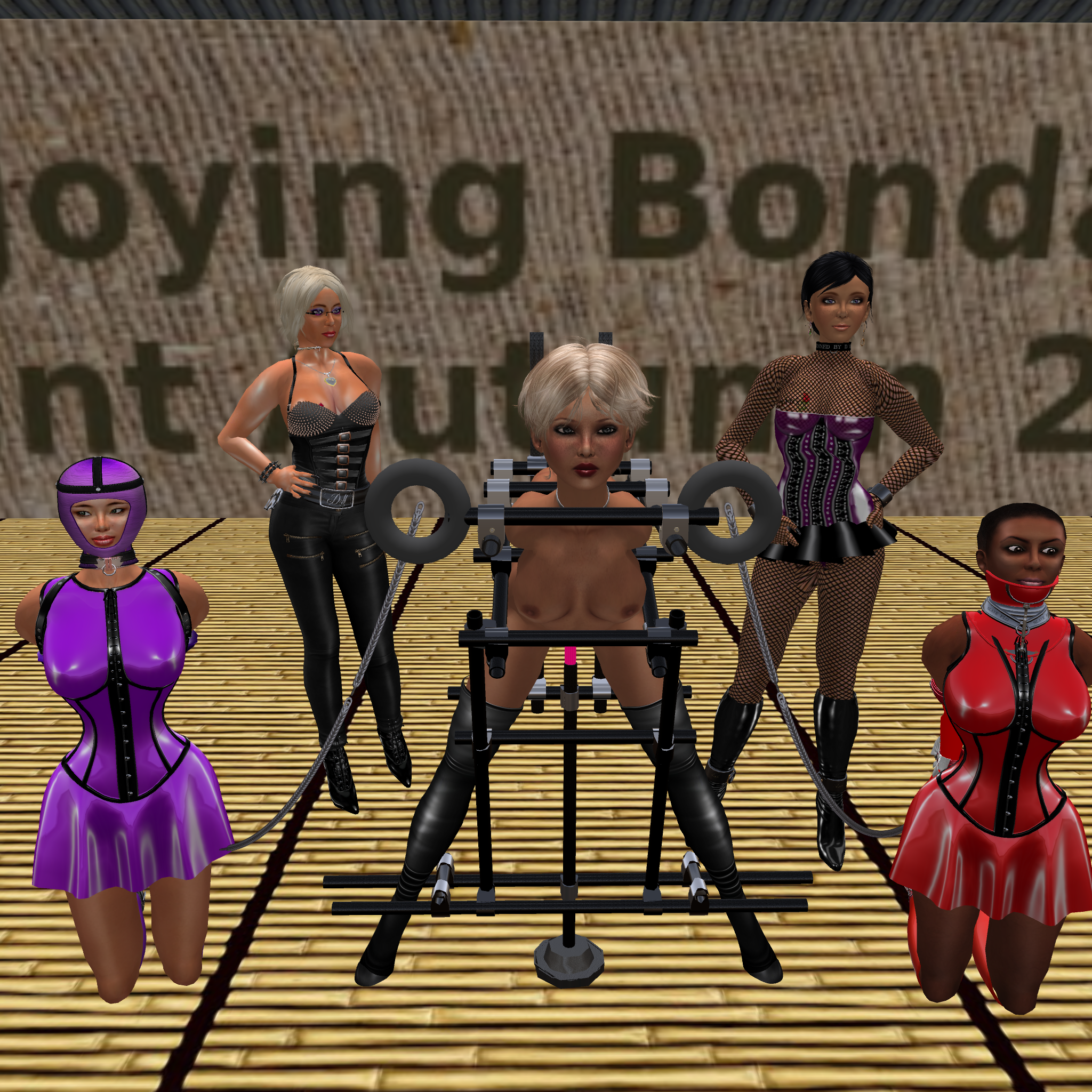 Later we went to Mesmerize dungeon for the slaves to cool down after riding the dildo’s and for chatting. We met slave L there who you might remember from last year where she joined some bondage fun. She makes a contrast to our slaves.