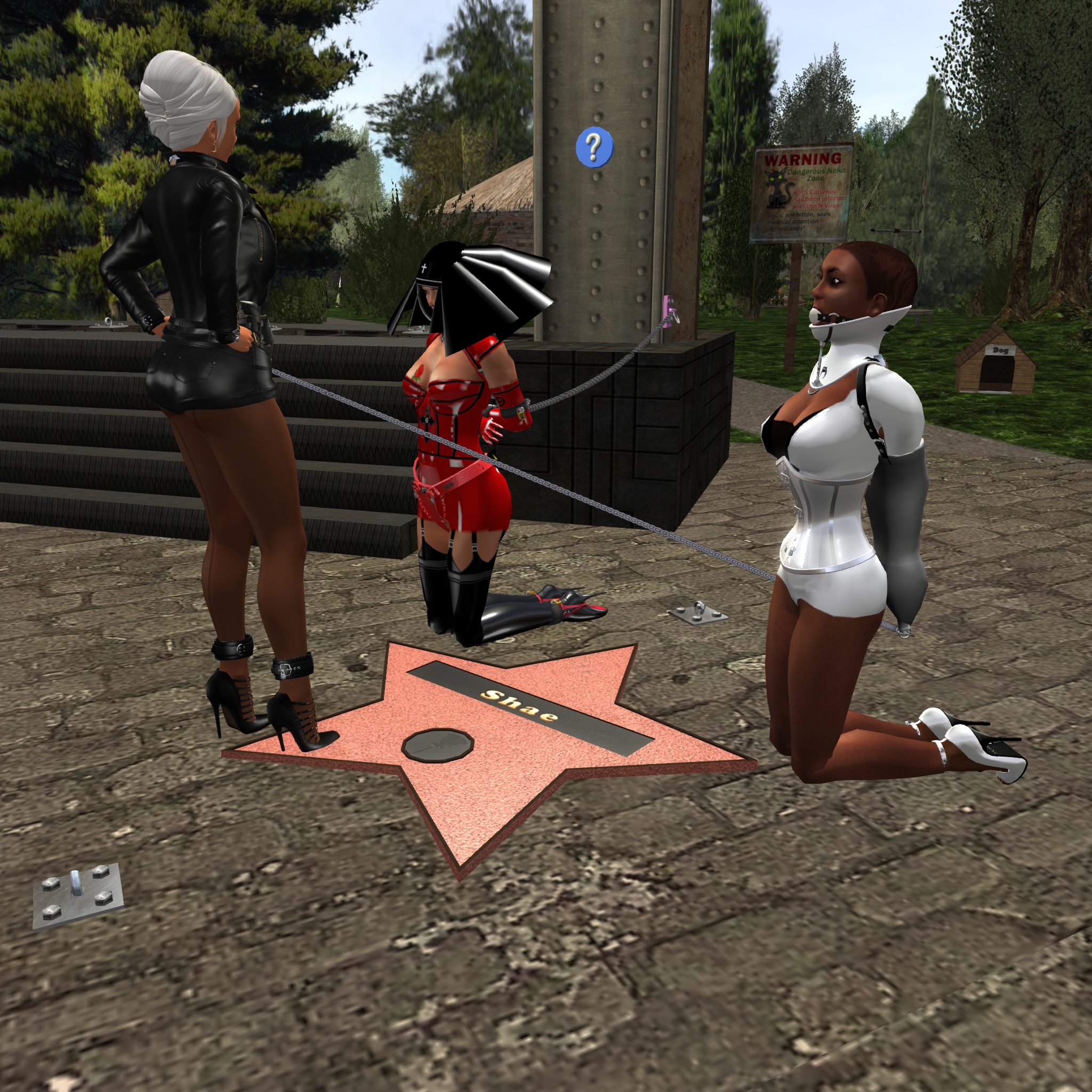 More than a week ago I put slave Nina into her new slave outfit consisting of a red catsuit, black ballet boots, a black metal spherical hood and black spherical metal mittens. I left her exposed at Lochme where she spent the last week in her helplessness. slave Flo got a similar reverse coloured outfit soon after slave Nina, and also sklavin Gebby is now in this outfit, but she is in purple and pink. This way the slaves can be easily recognized.