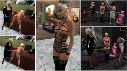 My night, Monday February 19th, began quite extraordinairy. My niece was at home and there was still a spanking awaiting for her, that we had just postponed. I decided to do it at the office. Angelique had to strip and to bend over the desk and I used the cane this time. And while I spanked her slave Flo and Mistress came inworld and watched which strangely motivated me even more. Angelique has such a cute bum, particularly when it has some colour.