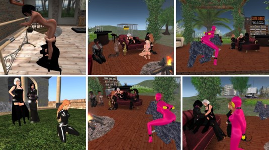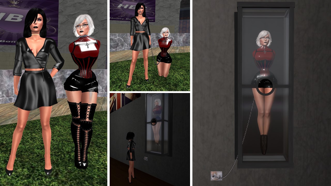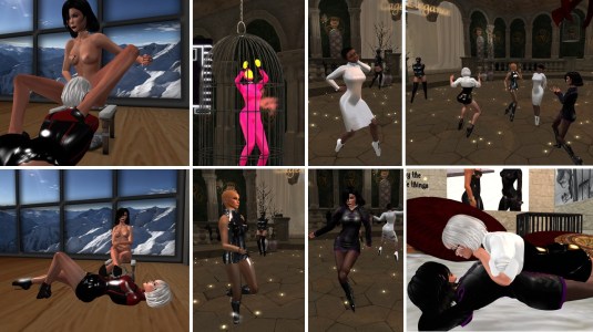 I planned another “Enjoying bondage night” for January. This time I wanted all 6 living latex dolls nicely lined up tied at Sarah’s patio. But it will be more or less impossible to get them all together on one single night. So my goal is to create a collage from 2 or three single nights. Last night was the first shot. slave Flo and slave Nina were online. I brought both to the patio and tied them up there. And of course it was fun tieing up the dolls and teasing them.