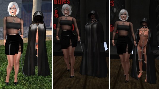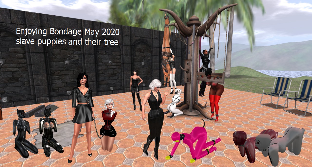After some shopping, which is always fun, last night I got even closer to the goal having all 6 living latex dolls on one picture. slave cecy and sklavin Gebby were online and thus I got the picture of living latex doll number 5. I tied both up at Sarah’s patio and after taking the pictures I had fun teasing the slaves. So after all, it was a relaxing quiet night.