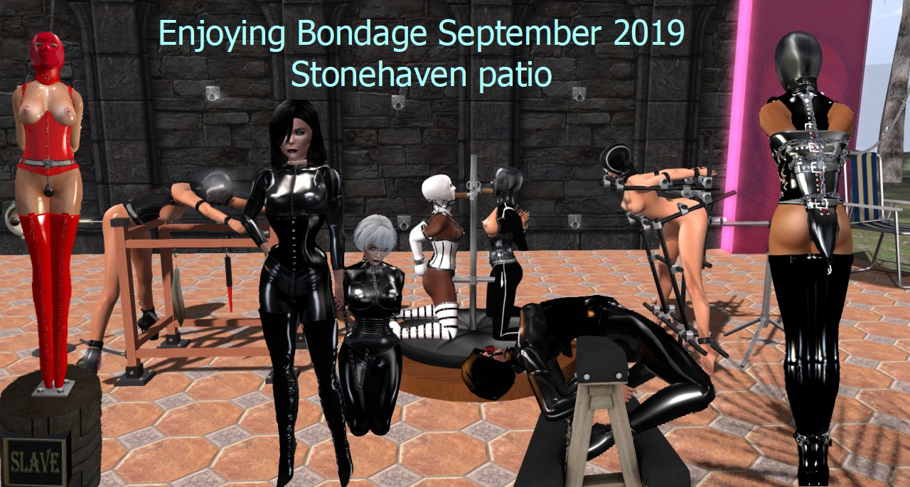 For three months, from May to July, we had slave Emmi (rileylynch) with us quite often. Emmi is a real bondage doll and up for being tied up almost always. She has a broad variety of gear and she’s a real expert using the same wardrobe system that we use. We had fun with her and she became a helpful sub friend when it comes to technical issues or new features like baked mesh. We also had slave Kathryn (Sheva Xaris) with us in Summer 2019. slave Kathryn is a friend of Kitty, living in the Western US and hence not in a very convenient timezone with us. Although slave Kathryn didn’t get that close to us we had a lot of fun with her.