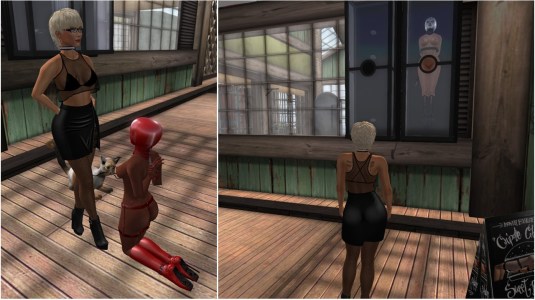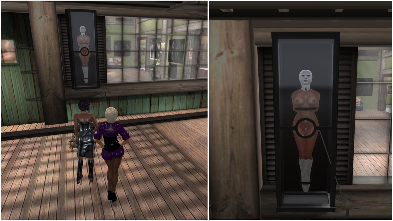 Angelique had to leave us and Mistress Jenny and I took slave Flo and slave Anne to Psi’s realm to expose them a bit. Like often it was full at Psi’s realm and we had a bit of fun. But it also had become late already again and soon after we brought the slaves back home. I had in mind to add a 5th display box for slave Anne at our porch, and I will if we ever get all 5 slaves online at the same time which is very unlikely. And as slave Flo has to clean our house we don’t lock her in a display box at night so that she can do her chores. Hence slave Anne could take slave Flo’s box as “her” display box.