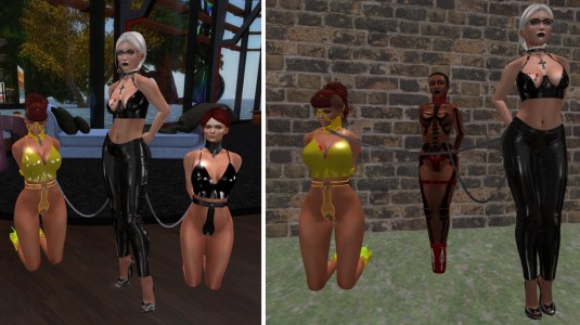 Wednesday night, November 2nd, I had 2 rounds of skipee with Flo. slave Holly joined us and I took her shopping. She got a corset and a thong. For slave Holly that was a big change as she doesn’t wear her chastity belt anymore now (for right now!). But I kept her in gold/yellow. Then we went to Carnal Intentions, where first slave Aya and then slave Alessi joined us.