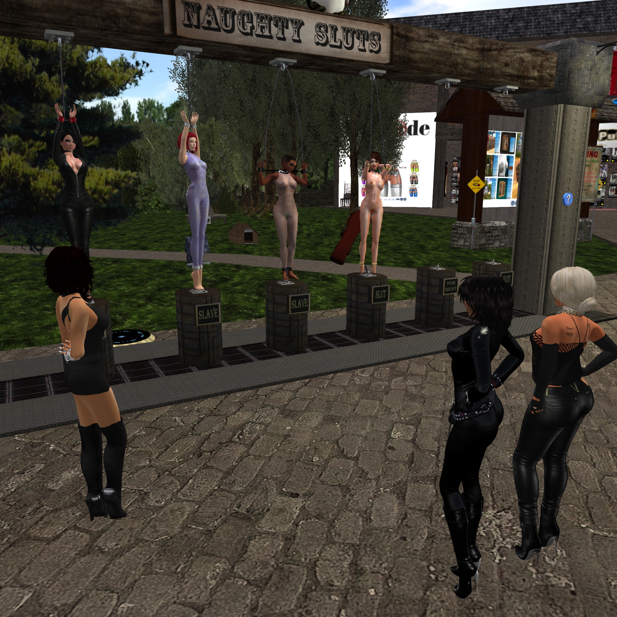 Monday, August 1st, we began to fit our slaves into their new midsummer outfit. It is according to midsummer something very little – a naughty harness colourable in 100 different colours and reveals the slave’s breasts and pussies. We added a RR armbinder and just to be prepared for any misbehaving a RR ringgag. That’s it – simple and sexy. slave Nina and slave cecy were the first who were put in their next outfit. When we were done and satisfied with their appearance Mistress Jenny and I took the slaves to Mesmerize Dungeon to expose them.