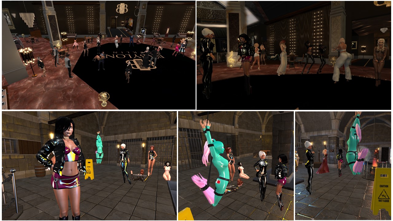 August 18th: Mistress Jenny, Diomita and Angelique enjoying a lovely night at the grand opening of Babylon Berlin / Mistress Jenny and Diomita storing slave slut cecy at Psi’s realm
