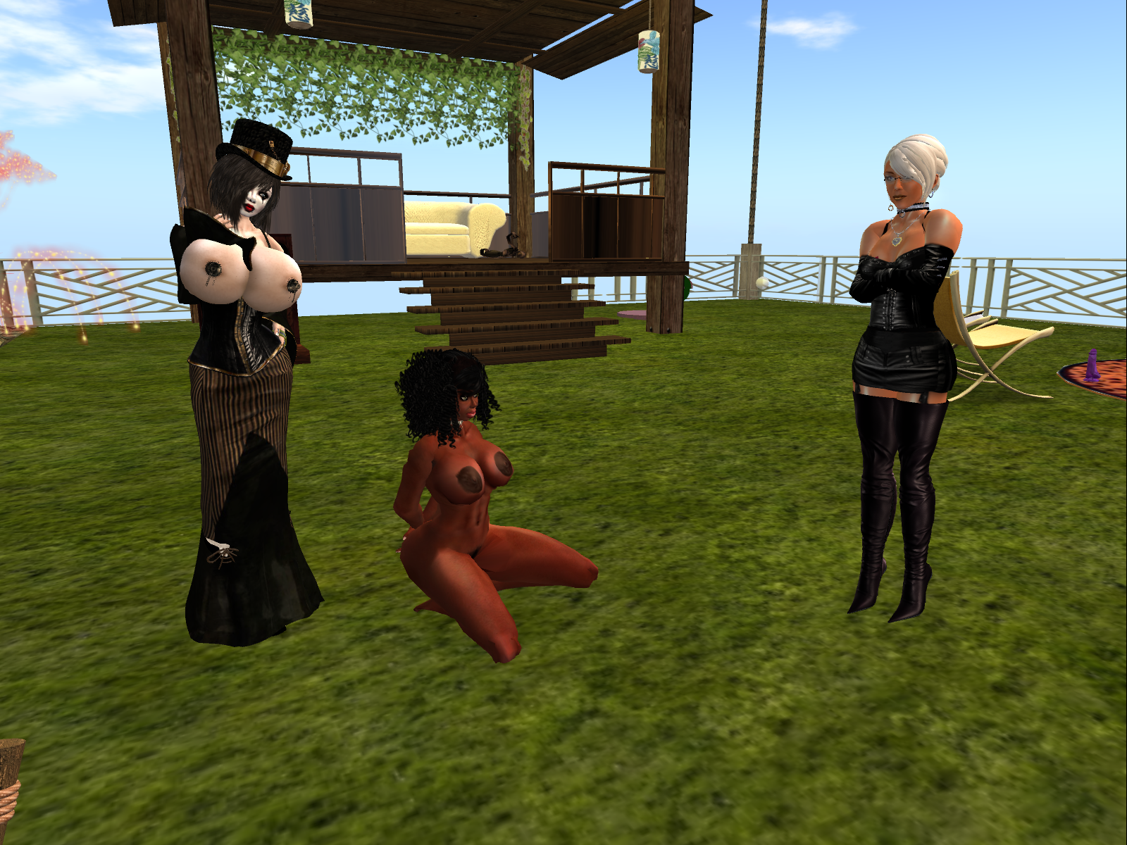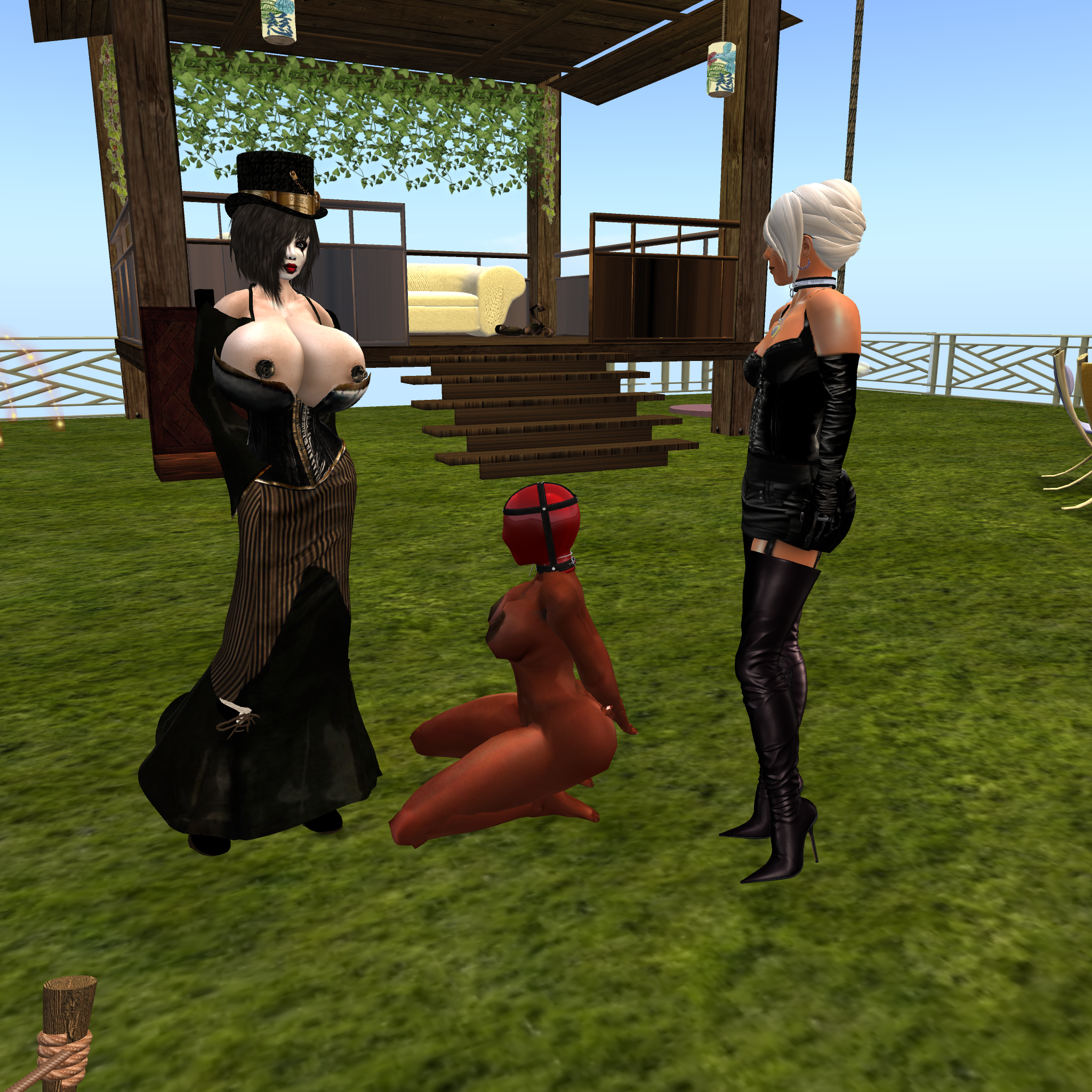 Then my Mistresses decided to go shopping with me. Every step.. these bells have been chiming and signed where her slave girl was. Mistress Jenny chooses to show me a wonderful white leather corset – first I thought they will just tease me….. but…. they purchased it to make me wear. To complete my new outfit they allowed me to slip into the white ballet boots to make them matching to the whole ensemble. I…. couldn’t resist…. I spontaneous jumped in the arms of my loved Mistresses and hugged them tight. With my new outfit my Mistresses leaded me to TSH – and ….. I got the chance to caress Mistress Jenny’s boots and to give her a soft massage on her stressed leg muscles. Mistress Jenny stroke over my head and let me feel her love.