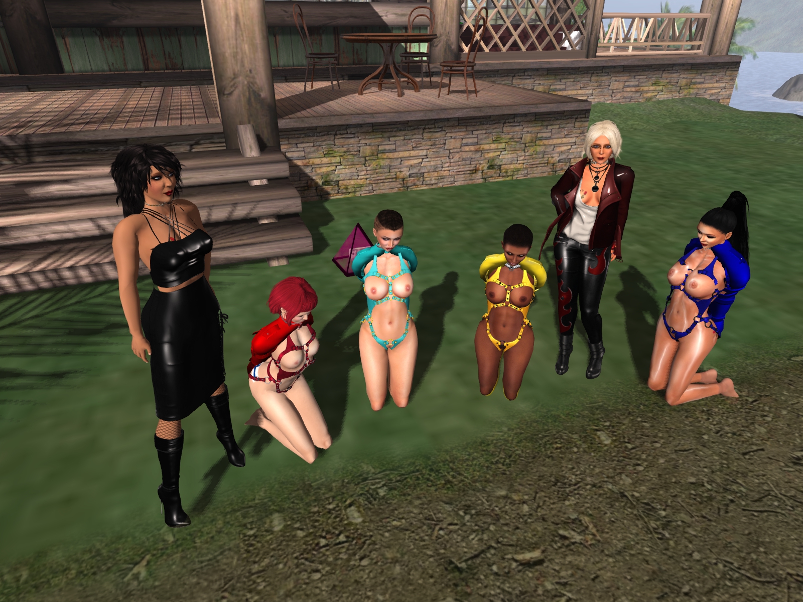August 4th at MD: slave L, Diomita, slave pink, Mistress Jenny, slave yellow and slave cyan