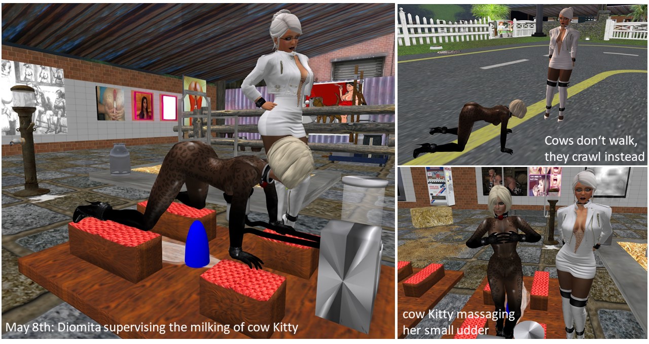 Kitty Maurer had kind of a competition with our ex-slave Dana and became a Hu-cow (Human Cow) like Dana. Considering that Kitty is male gave it an extra kinky touch. Kitty did well and produced lots of milk. I could have considered to drink my coffee with milk again *winks*. It was fun!