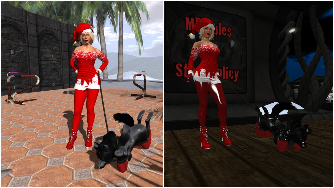As we didn’t get together for an enjoying bondage night with all slaves, I made the most of it and made a collage from what I found of our tours spreading some seasonal spirit over Second Life’s bdsm sims. This year was particular with having our slaves in a seasonal outfit all over the season. So here is the enjoying bondage picture of December 2016: