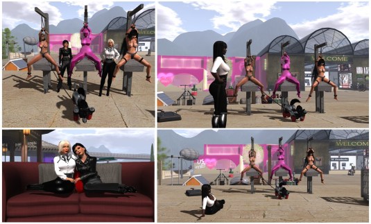 We were dressed for Mistresses’ April theme. Mistresses took us on a little trip to ‘Lock without Asking’ (I think), for some display pictures. Faceless Dolls for Mistresses’ pleasure. These pictures are the side that is the side SL sees – something deeper happens inside slave’s head. Sadly, sis Flo had to leave for her RL … but the evening wasn’t over.