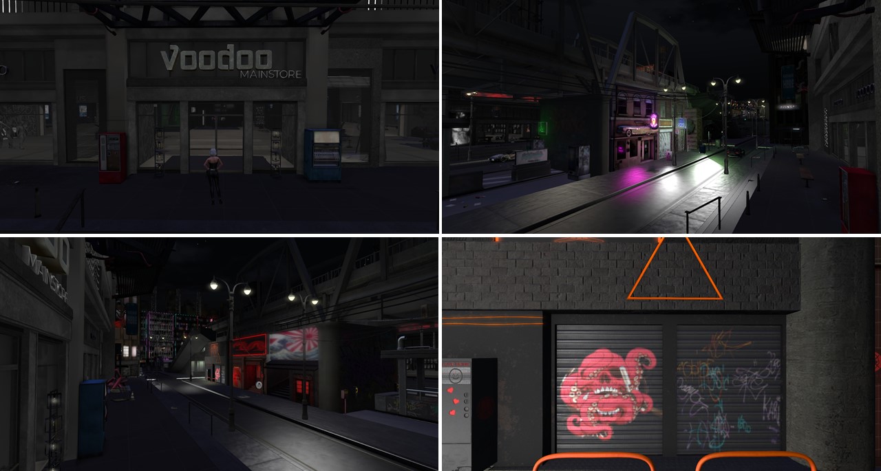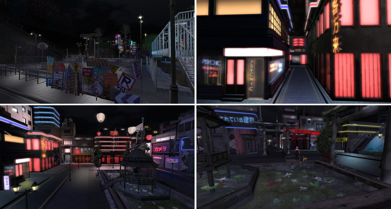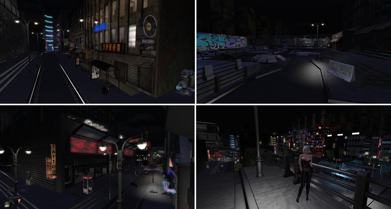 When I started my tour I kept the preset windlight which is set to night. It gives the scenery an even more odd atmosphere. I went to the residential blocks in the center and visited the water tower. The lights are set nicely to illuminate the abandonned town. Nonetheless the pictures were a bit dark and won’t show the many details. Therefore I decided to change my environment setting to “Anan Adored Realistic”.