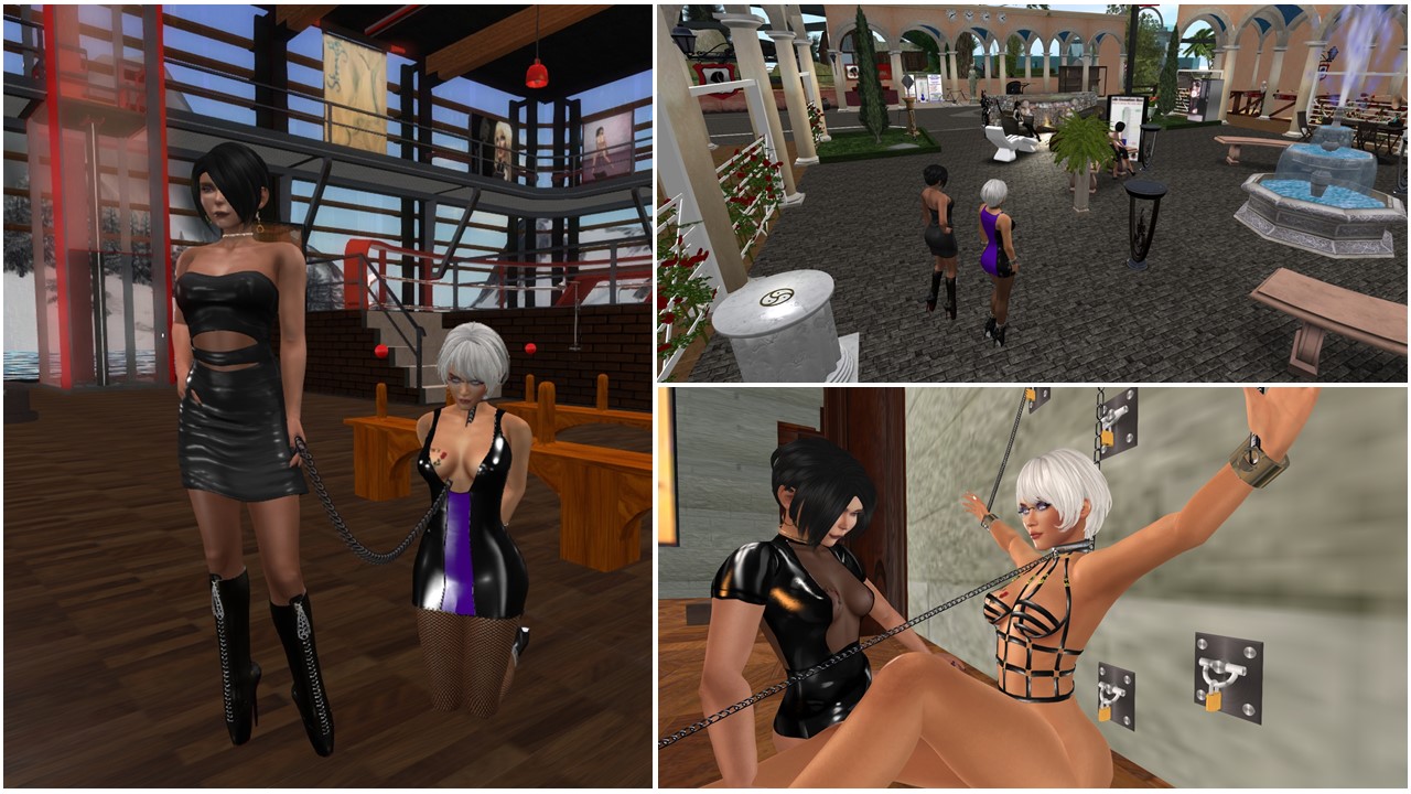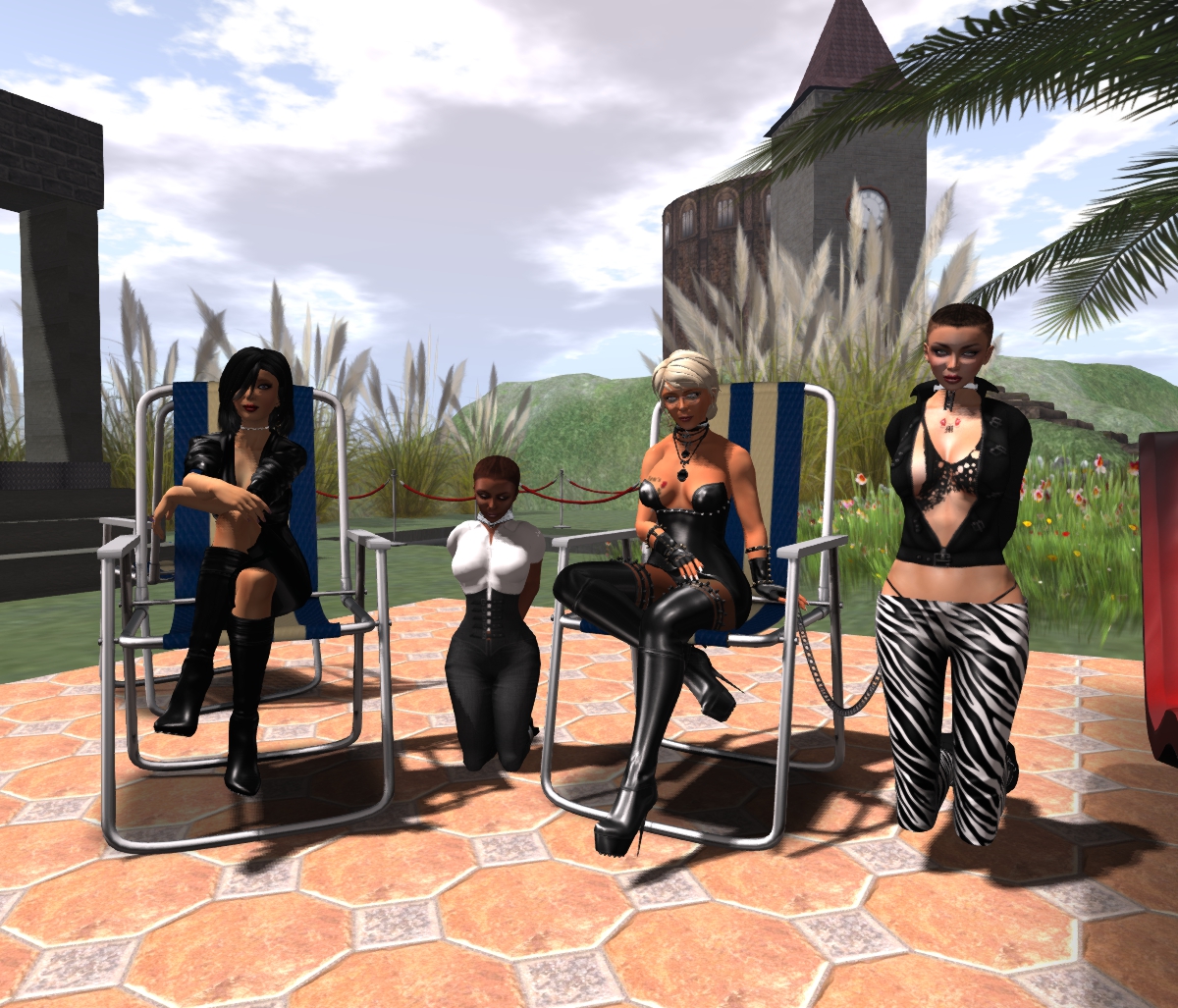 At night we had two drone slaves around us: slave drone Flo (in pink) and slave drong Flo two (Anne in white). Of course I didn’t restrict slave drone Flo two as tight as slave drone Flo yet. But slave drone Flo two has similar mantras to say in a random order. That was kind of a particular fun when Mistress Jenny, Angelique, the two drones and myself went to Mesmerize Dungeon and got some eye candy there while chatting.