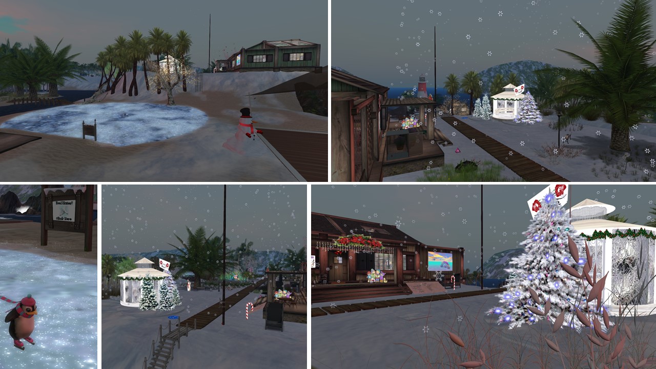 Mistress Jenny adjusted the windlight for our sim and set the terrain to Winter. After Mistress had left to tend to her RL I rezzed the ice scating. Ann was still present and contributed a kiosk that gives out free scating shoes and an animation. Thank you Ann. And I added two little penguins that play on the ice – something to watch.