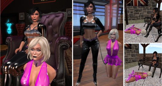 We went to Mesmerize Dungeon with slave Gwendi and summoned slave slut cecy to us when she came inworld. Mistress Jenny and I had fun teasing the slaves and we did attract some attention at Mesmerize Dungeon. At the same time I was still impressed by what had just happened before, hence playing and teasing the slaves was a welcomed distraction for me. When it was time to go home, Mistress and I parked slave slut cecy at Psi’s realm before we retreated to our skybox.