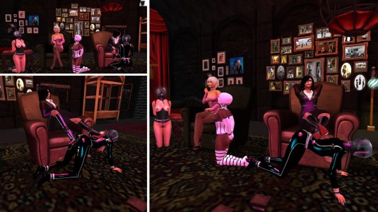 We moved on to Psi’s realm shortly before flotime as we had in mind to park slut cecy there. Did I mention that slut was meling behind her monitor? slave Gwendi met an old friend of hers there, Candy Rose (Tashani Viper), who was leashed at the entrance. We stayed a bit longer than planned and left slut at Psi’s when we headed home and off to bed. After all, it was a nice and varied night.