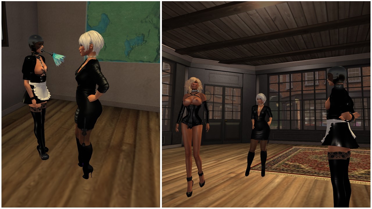 We had a round of skippe with the two drone slaves Flo I and Flo II, then we went to The Secret House, where we met Argi. Argi was shocked about Angelique’s red bum and outfit but she also liked it. We had fun teasing each other and Argi is always entertaining. And that’s it for this diary entry again.