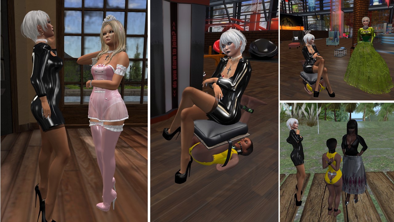 We went to Mesmerize Dungeon afterwards and slave Christin and slave Gwendi joined us there. The leash had disconnected but I established it again, so now Angelique really held my leash. It was fun for the two uf us.