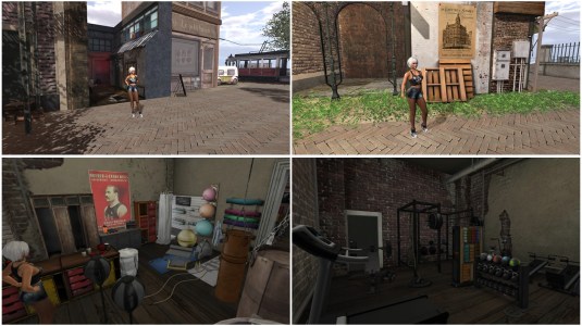 I first went to the tower. On the ground level is a bondage cage and a hanging cage, we do own these both ourselves. I searched for a way to see the other levels of the tower but there’re no stairs nor a teleport. And I also found out that the other levels are empty. Just on the top level I found a Shibari table and naughty me tried it. What began as a simploring tour became a little “Enjoying bondage” scene. I tried out all poses and took dozends of pictures at the top level of the tower.