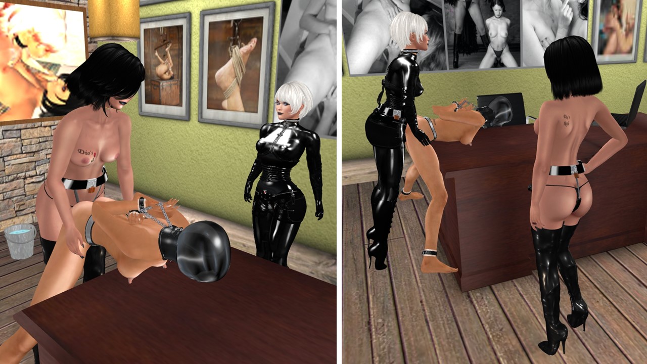 We returned home and left Kitty, slave Flo and slave gwendi when it was slave Flo’s betime and retreated to our skybox. Time for my green light! I took Mistress to the annex of our skybox, to “my” part of it and took control. It felt so good to have her at my feet. And it felt even better having her lick me. Before we went offline I set up Mistress’ cuffs for fun and trouble (leaving her keys out and unavailable for her herself).