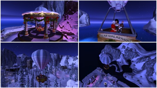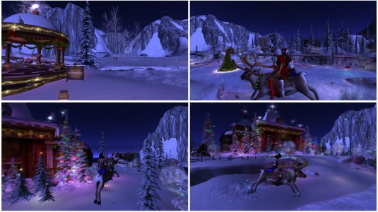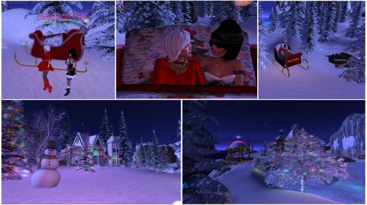 At night we met with Angelique and Flo at home. Mistress and I had changed into the same outfit, a Christmas outfit that we got as a group gift. We had a reason for wearing it. As every year we wanted to visit Calas Galadhon’s Christmas installation. In 2020 it was called “A Christmas Dream” (read also here). For visiting we had to reduce our script load. We were about to leave home, when slave Melissa came inworld. Taking off her restraints and restrictions would have been … work. A slave’s destiny is that sometimes they have to wait for their owner – restricted of course. I took slave Melissa to Psi’s realm and then Mistress, Angelique, Flo and I had our tradition Calas Galadhon Christmas trip.