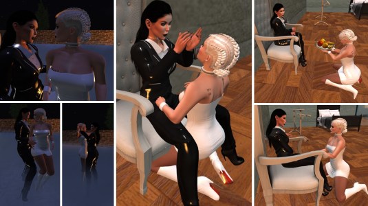 I had also decided to have our Friday night party as another fix date in our Second Life routine. Jenny would have demanded that we continue having fun together. I selected something about twins as a theme. Angelique and I would go as “Angelique” twins, slave Holly and slave Alessi were already twins: