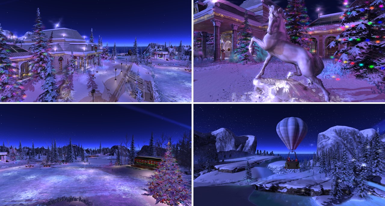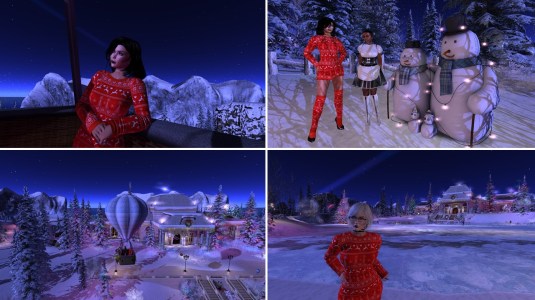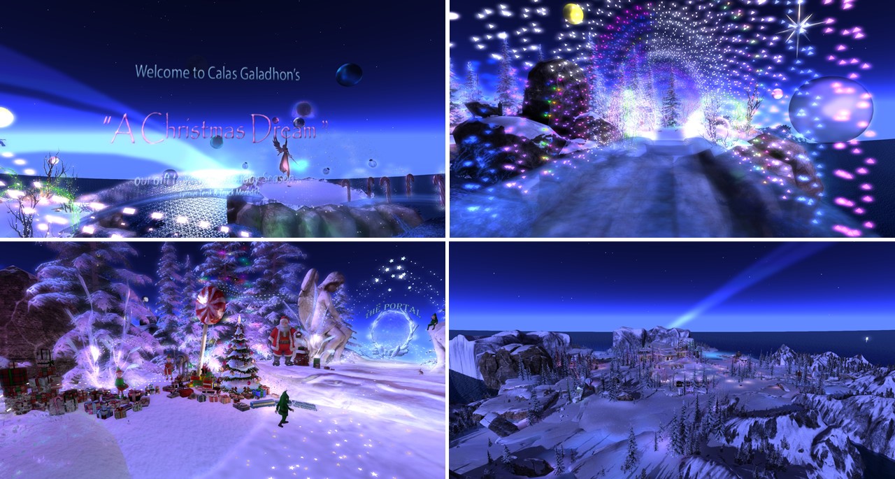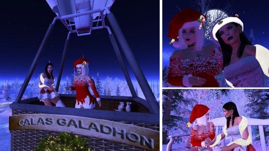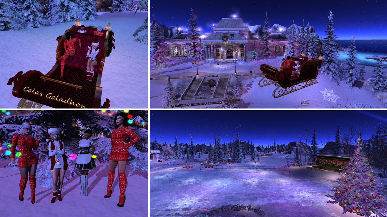 At night we met with Angelique and Flo at home. Mistress and I had changed into the same outfit, a Christmas outfit that we got as a group gift. We had a reason for wearing it. As every year we wanted to visit Calas Galadhon’s Christmas installation. In 2020 it was called “A Christmas Dream” (read also here). For visiting we had to reduce our script load. We were about to leave home, when slave Melissa came inworld. Taking off her restraints and restrictions would have been … work. A slave’s destiny is that sometimes they have to wait for their owner – restricted of course. I took slave Melissa to Psi’s realm and then Mistress, Angelique, Flo and I had our tradition Calas Galadhon Christmas trip.