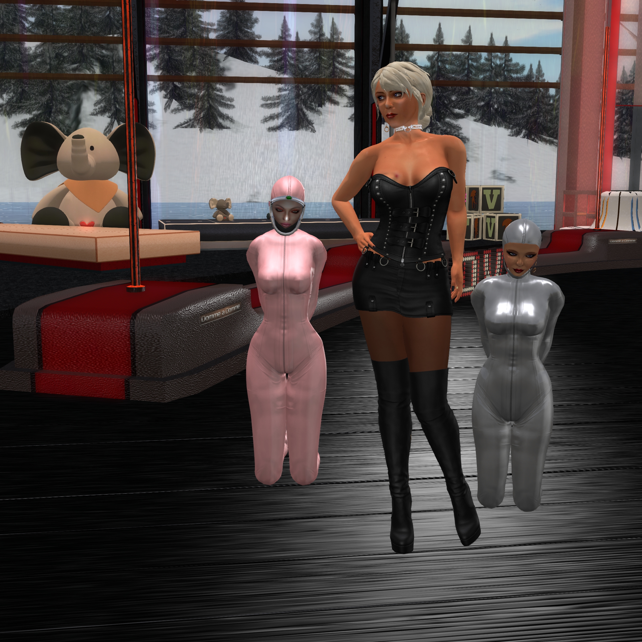 Kitty told me that it is more or less the successor sim of Hathor’s, a sim she and Dana visited often and where Dana spent a lot of time as a milking cow, her favourite kink. That reminded me about Dana and as she was online, I teleported her to us. We had a chat, actually I had not seen Dana for several months. But I heard about her from Kitty. All of a sudden Dana used an old but still very useful and hilarious RLV tool and transformed Kitty into Dana’s bra.
