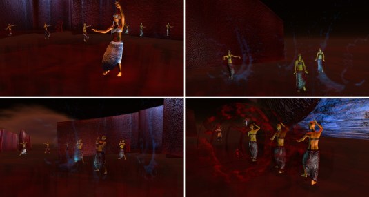 Theda made a great choreography. I don’t know how the mesh figures are programmed to dance and to move, but it looks naturally and enough randomized to provide the impression of living dancers. You should see it yourself. I found a video on the internet. It has been provided by Violet Boa.