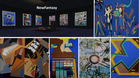 Vita Theas used her skybox at La Maison d’Aneli for a space installation on a lower level and for displaying her pictures on the ground and upper level. The space level shows several celestial bodies. I recognized the milkstreet, asteroids and the planet earth. A figure is using the earth to ride on it like on a cannonball.
