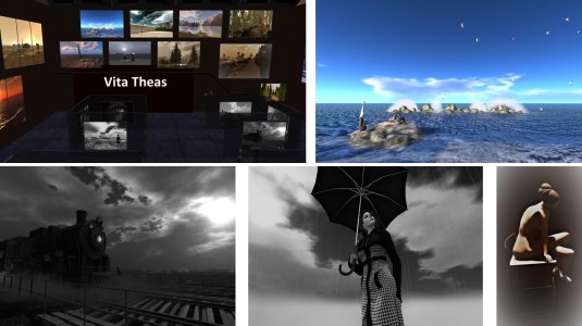 Vita Theas is in Second Life since 2007 and has been a mamager of an art center for a decade. She has varied experiences as a maker of clothes and a builder within Second Life and she spends much time taking pictures these both for her creations and as art projects. As an arist she exhibited at several galleries and she participates in the Second Life Birtday events.