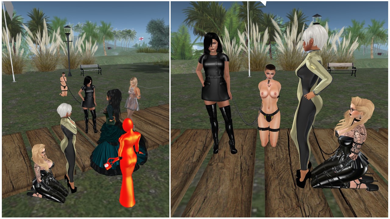Wednesday, December 5th, Mistress Jenny and I had some time in the afternoon together. We went exploring Bound by Desire Club and Public RLV Playground. I had come across it when I met Gwendolyn (gwendoelynn) the day before at club Domme a Domme. I hadn’t seen Gwendolyn for more than 5 years, she was together with Wiltrud Piccard that time as far as I remember. Bound by Desire is the place she spends most of her time as she told me. It was quite empty at the time we visited. Mistress Jenny leashed me and had a look around, then we moved on to Trouble Tavern for a bit and then our time was already over again.