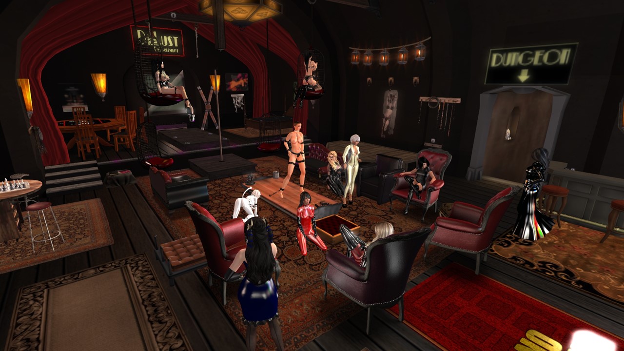 slave Flo came inworld and had to wait for our return home. As a reward Mistress Jenny let her choose which club to visit and slave Flo choose club DeLust. It was full there and after we found a nice place, slave Flo danced for us and the other guests. She’s a real eye candy in her tight corset, the ballet boots and wearing the hood. We spent some time at club DeLust and after slave Flo left we went to Mesmerize Dungeon shortly before we retreated home and …. (no pictures *winks*)