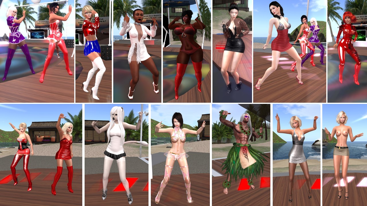 January 22nd – Friday night party: Diomita, Mistress Jenny, Angelique, Flo, Ebony, Faye, Irene, Baroness Capelo (upper row), Della Randt, Starbright Wingtips, Zarra Fluffpaw, Claire (maddh4tt3r), Talos, Virgo dressed and topless (lower row)