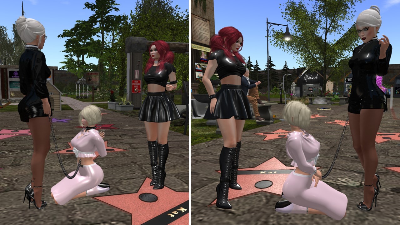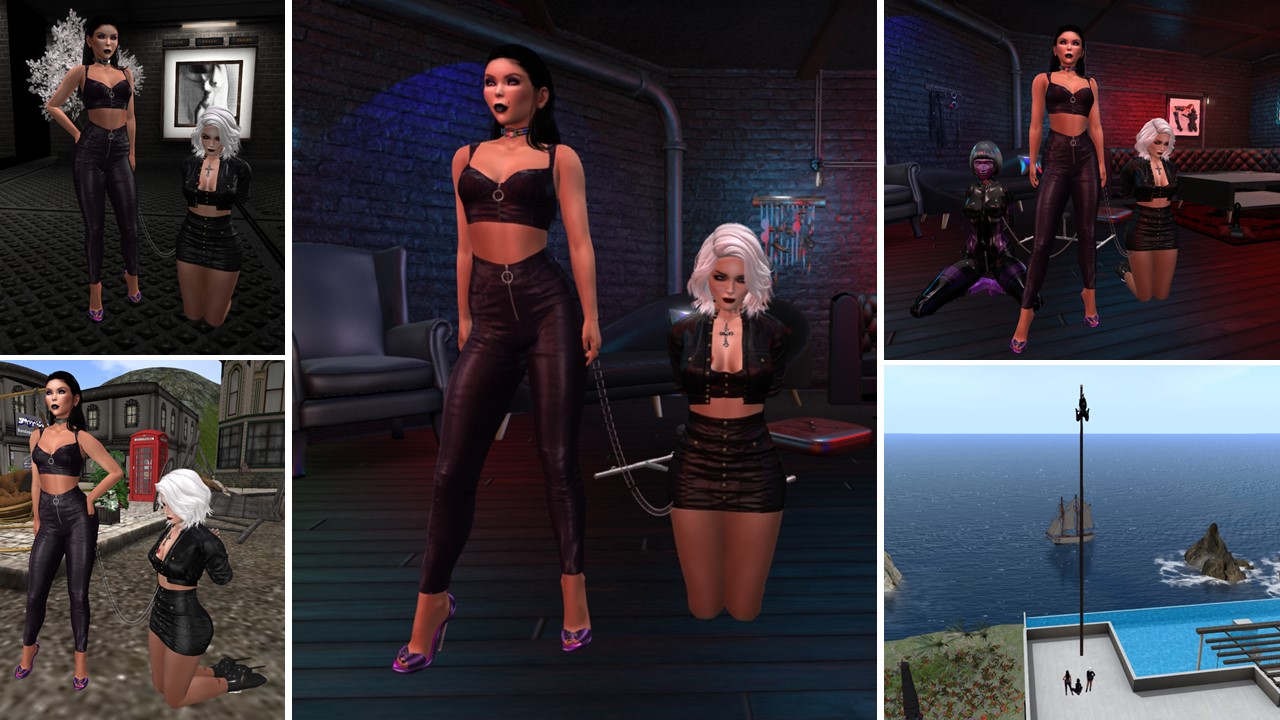 Mistress Jenny locked my arms behind and leashed me after she had got a subhug from me. We went down to the games area to meet Flo there. slave Luci (Luci Glendale) and slave Lily (Lily Bloodrose) joined as there soon after. And even slave Alessi came by shortly. As Mistress had added a hoover text above my head “collared for 9 years today”, I got the attentions that Mistress wanted to achieve. slave Alessi had to tend to her RL again, Mistress Jenny, Flo, Luci and slave Lily and I played a round of greedy. After the game Flo left us and Mistress Jenny took me and the slaves to Psi’s realm where she leashed all of us at the wall of shame. I could sense that Mistress did enjoy demonstrating her power. We didn’t stay long, maybe 15 or 20 minutes, then we returned home and Mistress retreated with me to our skybox, where I got my next collaring anniversary present. I was allowed to lick Mistress and to get my fix – and she allowed me to rub myself at her feet (I had to clean it afterwards of course). Finally before we left to tend to our RL, Mistress changed into a black catsuit that perfectly expresses her position. it was an intense and varied afternoon for me.