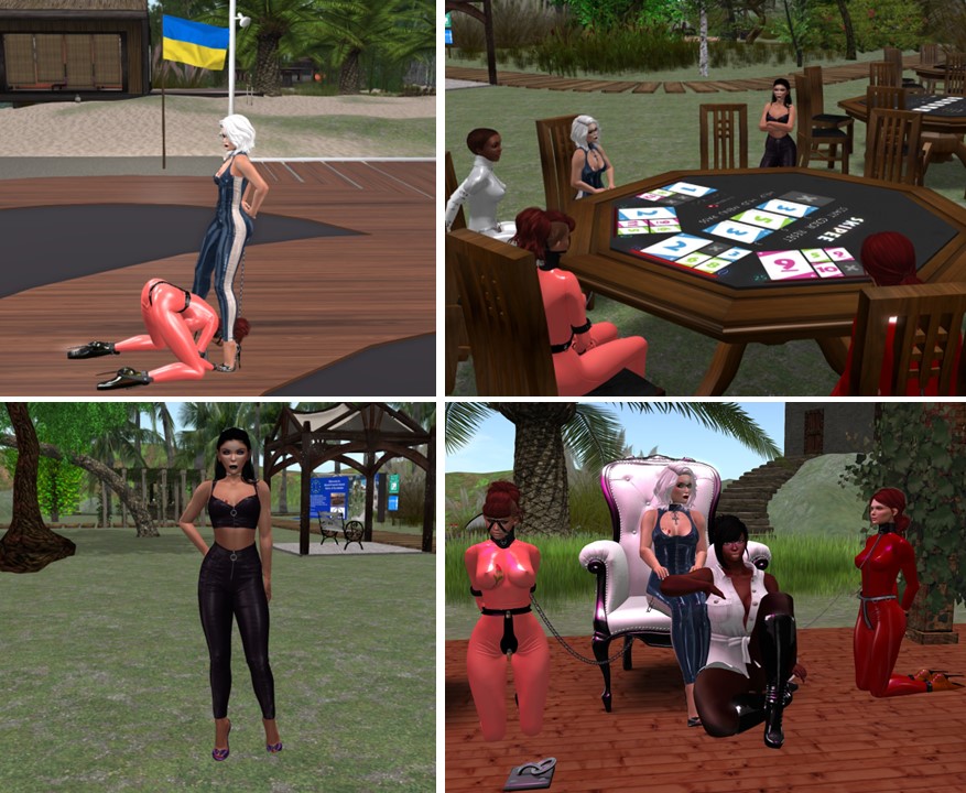When I returned at night Flo and slave Holly were already inworld and we played a round of skipee. And when slave Alessi joined us we played another round as teams. Mistress Jenny showed up. She was on a slow and unstable connection and didn’t join the play. I had the opportunity to catch up with Mistress while playing. That was a bonus. Mistress left when we had finished our game – and Ebony joined us. It was already late and I was tired. Hence I took slave Holly, slave Alessi and Ebony with me to our decking and we continued chatting until midnight, then I retreated to get some sleep.